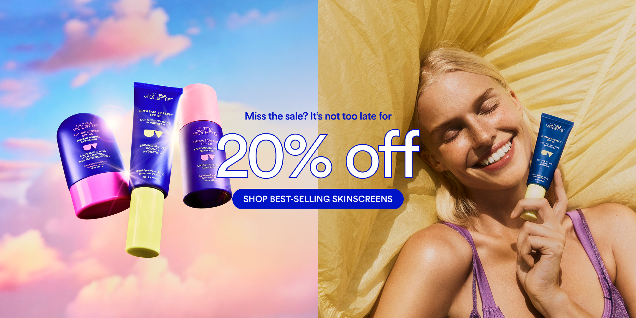 PSA: Sunscreen is non-negotiable (even when it’s raining and there’s cloud coverage). This is where Ultra Violette steps in. Every single SKINSCREEN is spiked with over-achieving actives that do double duty as daily sun protection and high-performance skincare. With melt-into-the-skin textures and the most flattering skin finishes, why wear a sunscreen when you can wear SKINSCREEN?